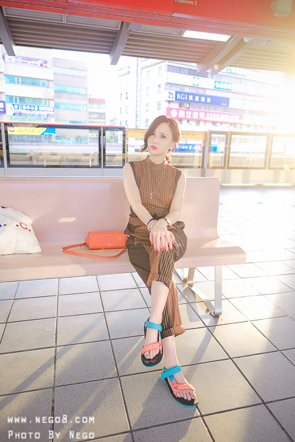 這天穿的式連身的條紋套裝搭配這雙TEVA這雙漸層配色